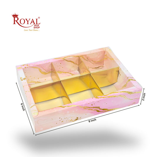 6pc Brownie Hamper Box with Transparent Lid | 9x6x2 inches | Pink Marble Print