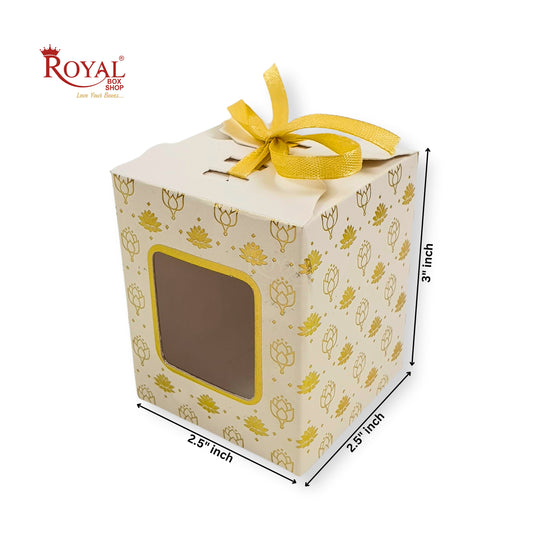 Premium Gift Box | RCF-06 | 3x2.5x2.5 inches | Cream With Flower Leafing