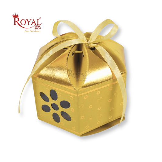 Royal Lotus Shape Gift Box I 3.5x3.5x2 Inch I Yellow I Polka