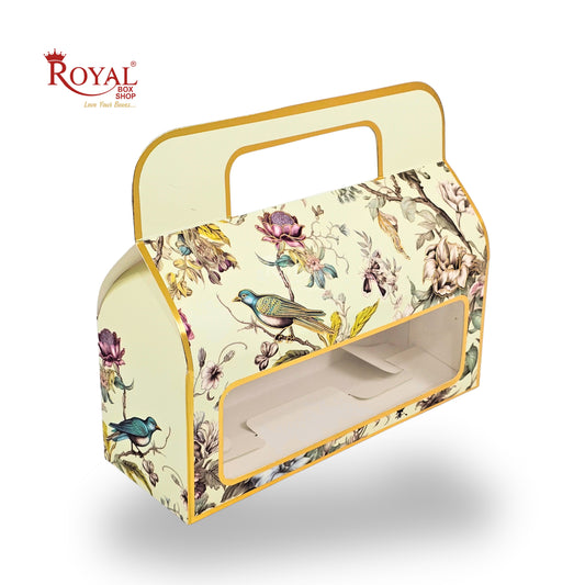 Royal Box Shop® Festive Gift Hamper Box With Handle | RBF-49 D2 | 10.5x4x3.75 Inch | Cream With Bird Print