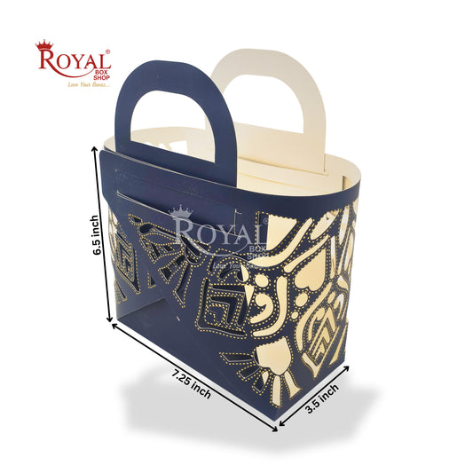 Royal 4 Jar Gift Hamper Bags I Laser Cut Gold Foiling I Navy Blue I Wedding, Corporate Birthday Return Gifting Hamper Bags