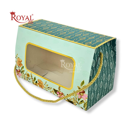 2 Jar Hamper Box With Bow Shape Handle | RBF-47 D2 | 7x4.5x3.25 Inch | Green