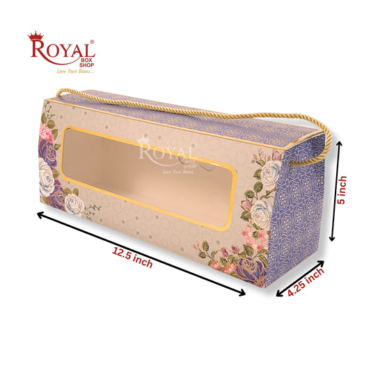 Premium Gift Box with Window I Purple Flower Leaf Print I 4x2.5x3.5 inches I For Return Favor Gift, Baby Shower Gifts, Room Hampers, Candy Box, Birthday Return Gift