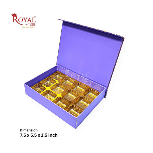 Rigid Chocolate Boxes 12 Cavity With Magnetic Flap I Purple with Gold Foiling I 7.5 X 5.5 X 1.5 Inch I Kappa Boxes