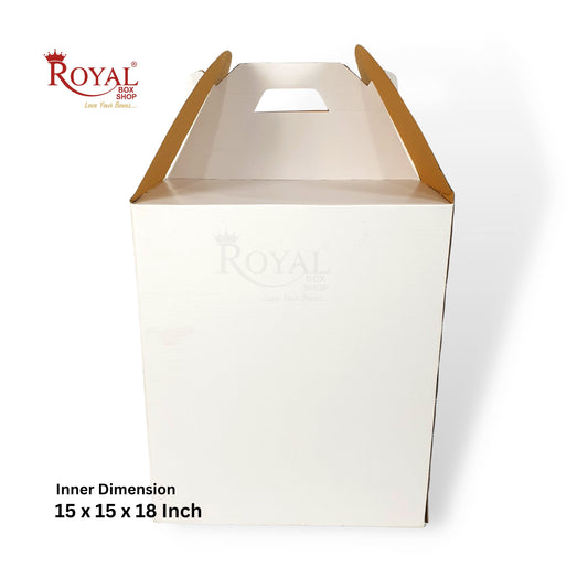 Corrugated Tall Cake Box with Handle I Exquisite White I 15x15x18 Inch I Perfect for Birthdays Cake Packaging