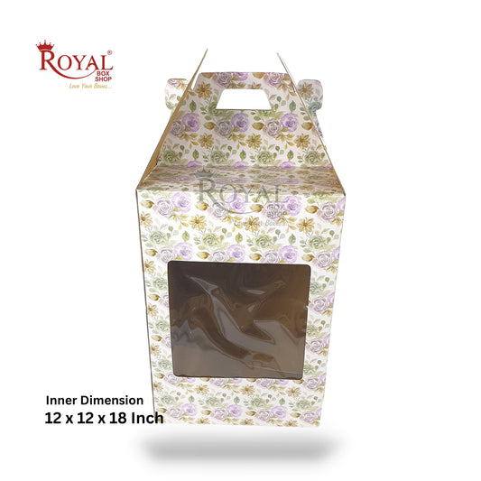 Corrugated Window Cake Box with Handle I Exquisite Floral Print I 12x12x18 Inch I Box for Birthdays & Celebrations