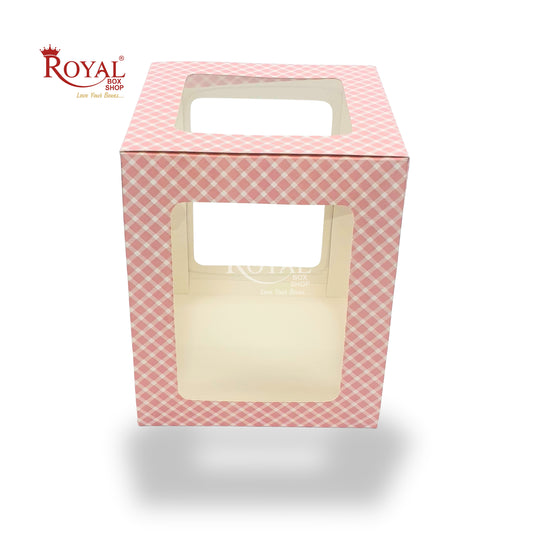 RoyalBoxShop® 5-Window Gift Box I 8x8x10 Inch I Pink Check I Perfect for Bakery Cakes, Gifts, Parties, Any Occasion