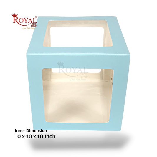 RoyalBoxShop® 5-Window Gift Box I 10x10x10 Inch I Blue I Perfect for Bakery Cakes, Gifts, Parties, Any Occasion