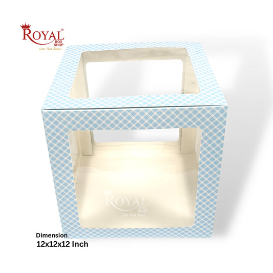 RoyalBoxShop® 5-Window Gift Box I 12x12x12 Inch I Blue Check I Perfect for Bakery Cakes, Gifts, Parties, Any Occasion