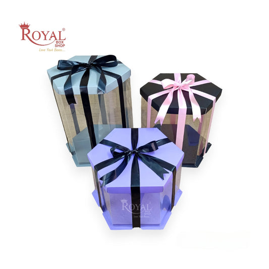 Transparent Tall Cake Box with Ribbon I Grey Color I Wedding and Gift Display