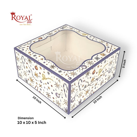 Cake Box With Window | White Christmas Theme | Size 10x10x5 inch | 350 GSM I One Kg Cake Box | B2B
