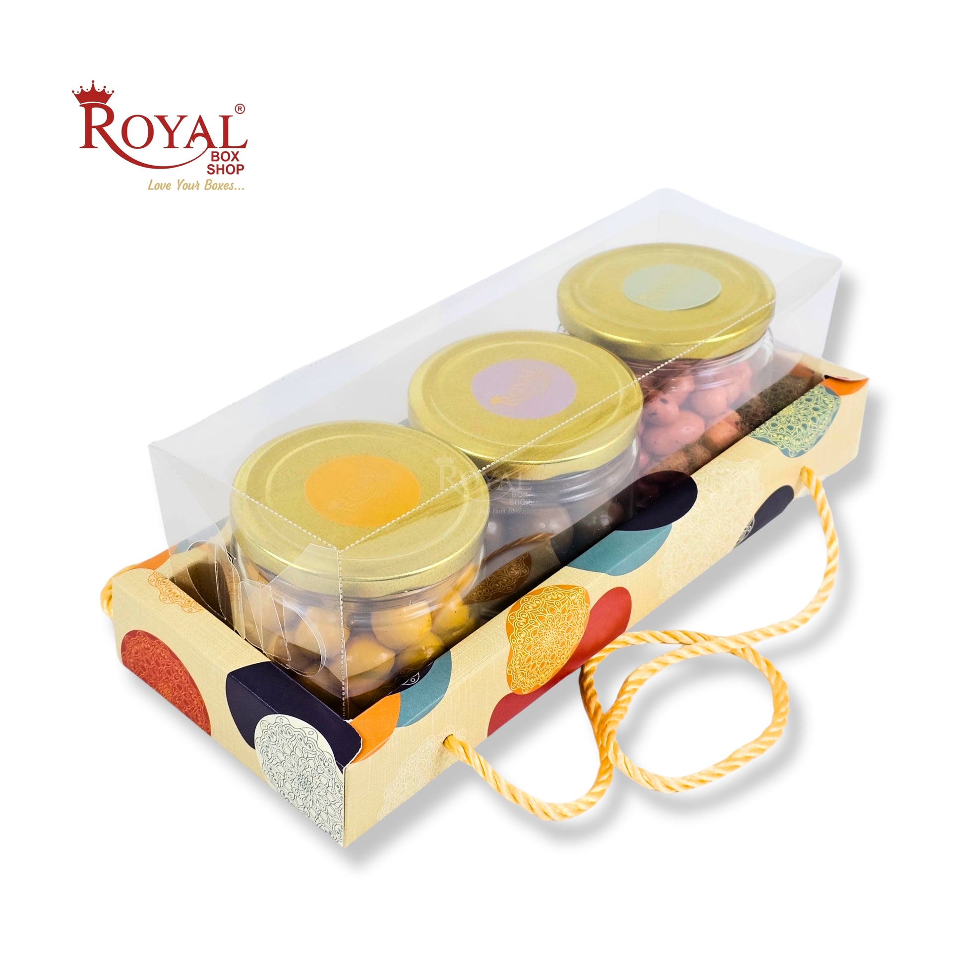 Don't settle for boring, ordinary party favors. Upgrade to the 3 Mason Jar Box With Dori from Royal Box Shop. With its premium design and versatile uses, it's sure to impress your guests.