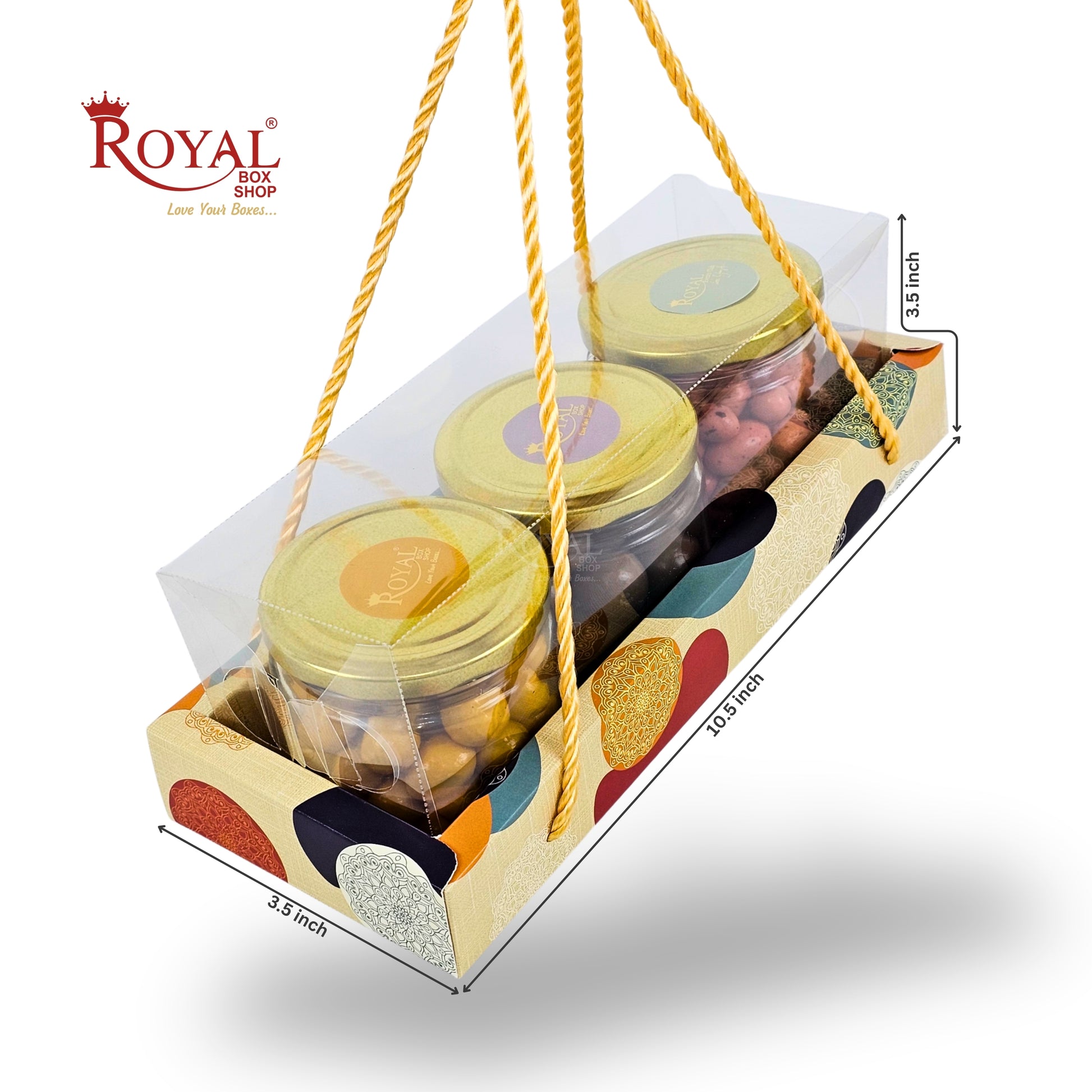3 Mason Jar Gift Hamper Box With Thread | 10.5x3.5x3.5 Inches | Cream Mandala Print