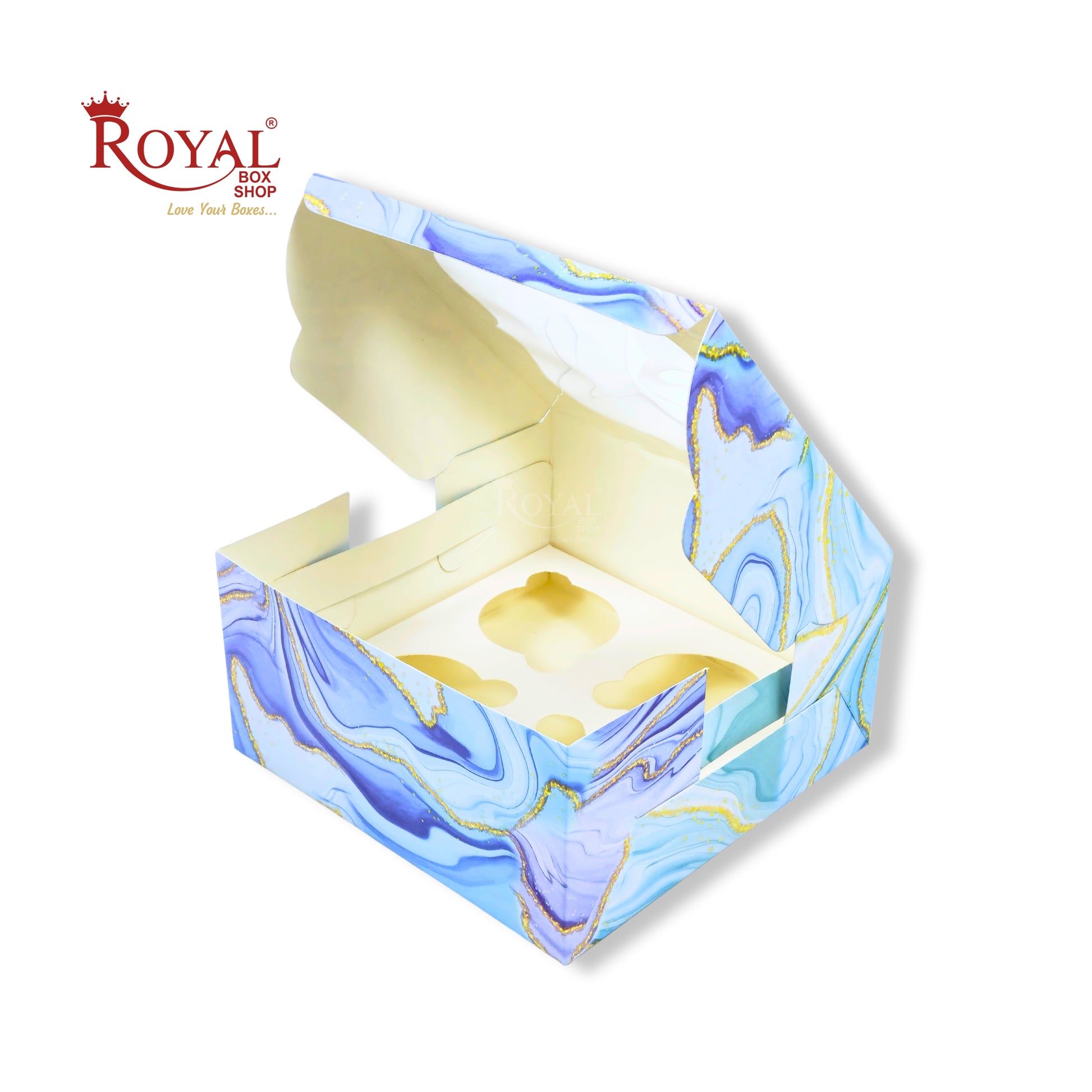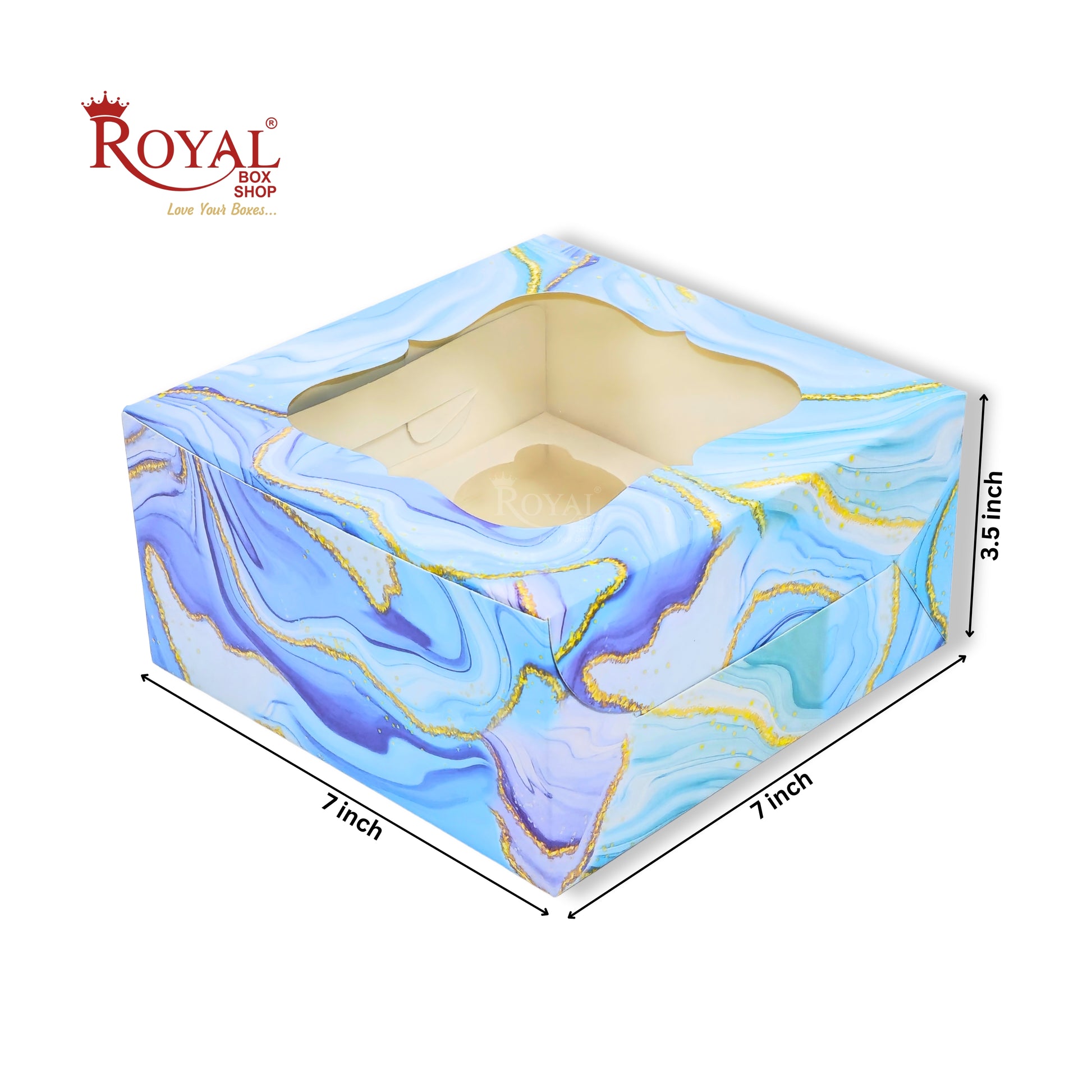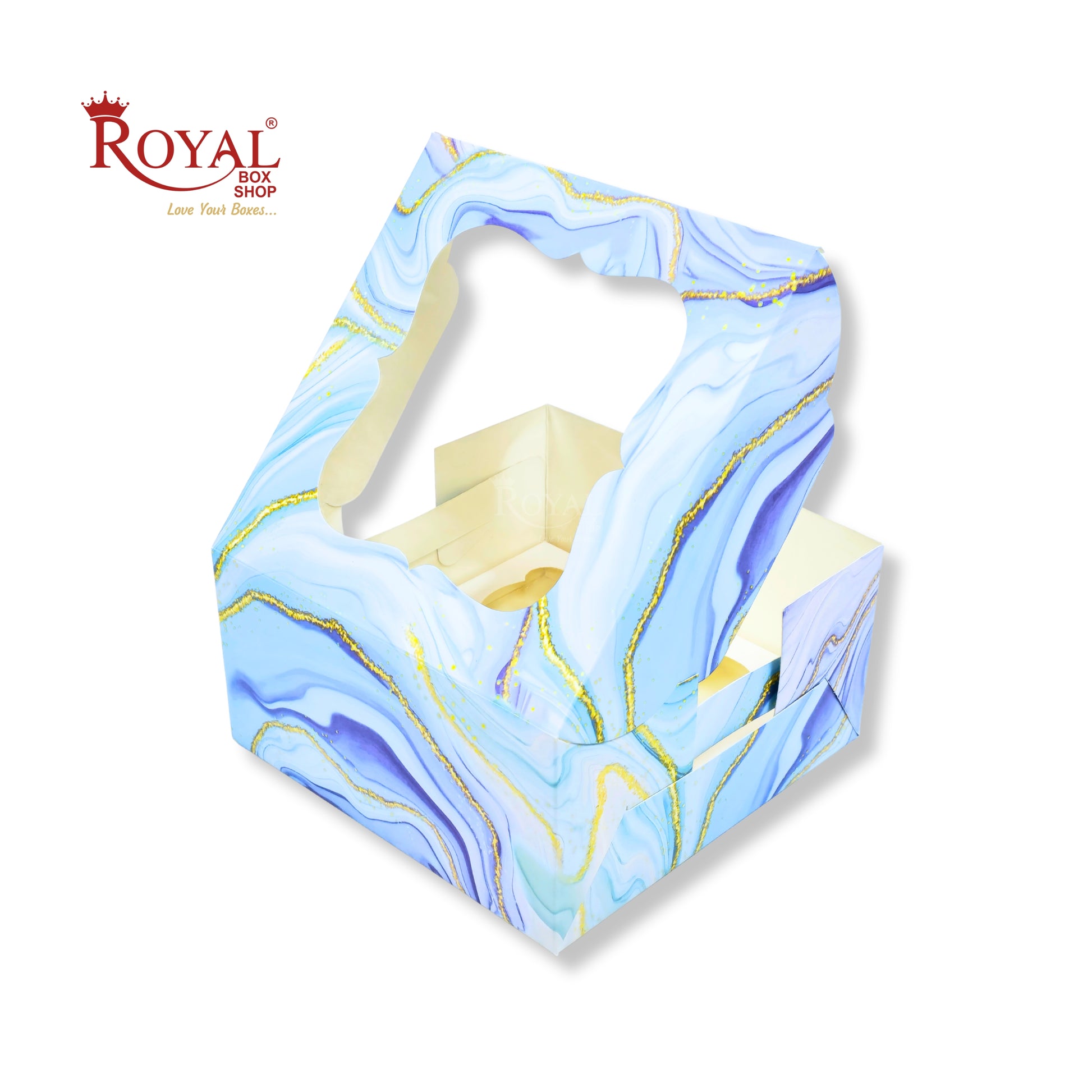 4 Cupcake Box With Window | 7x7x3.5 Inch | Blue Marble Print | FBB