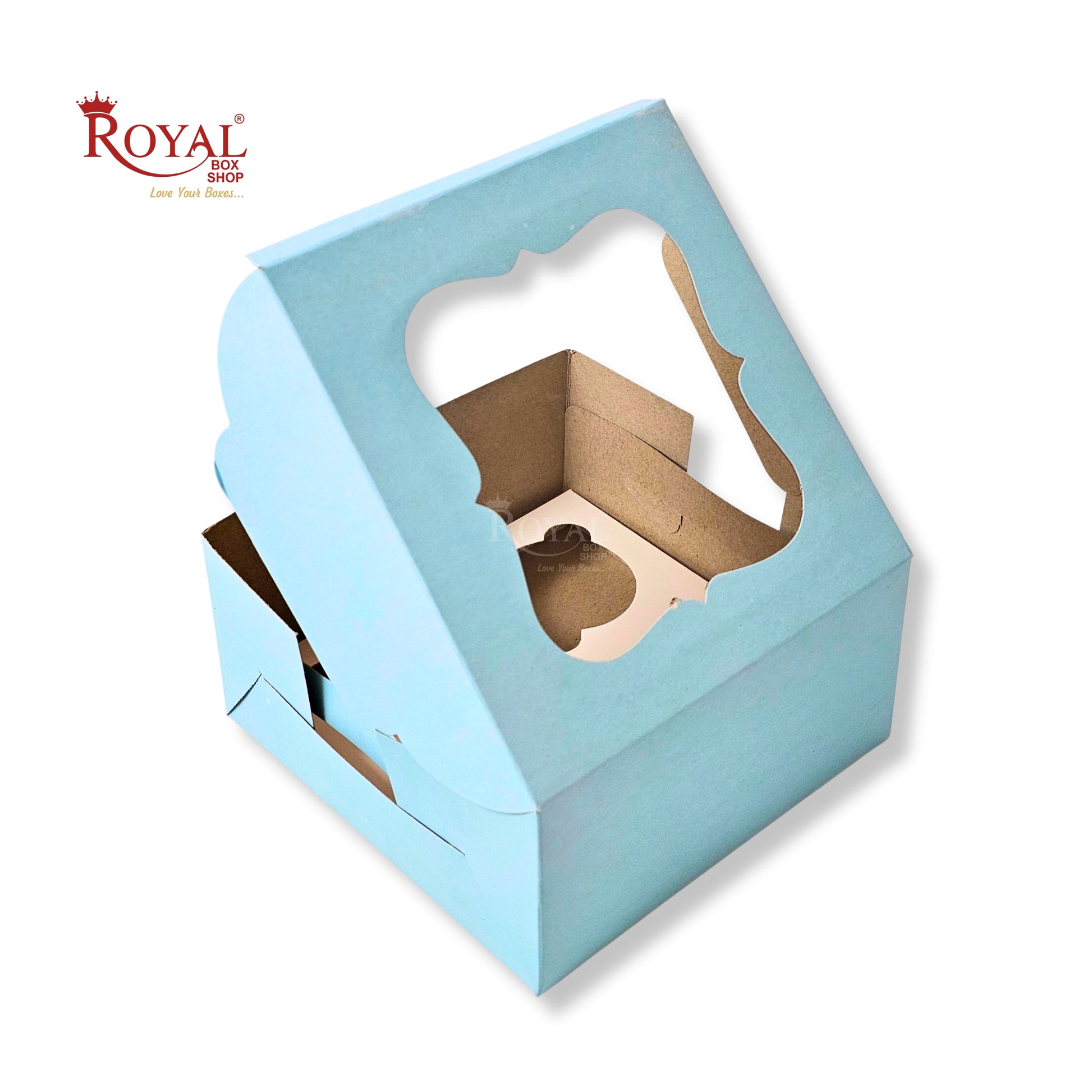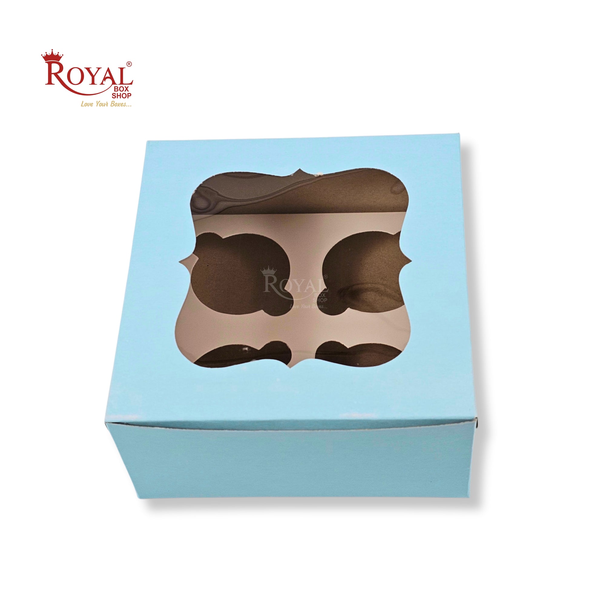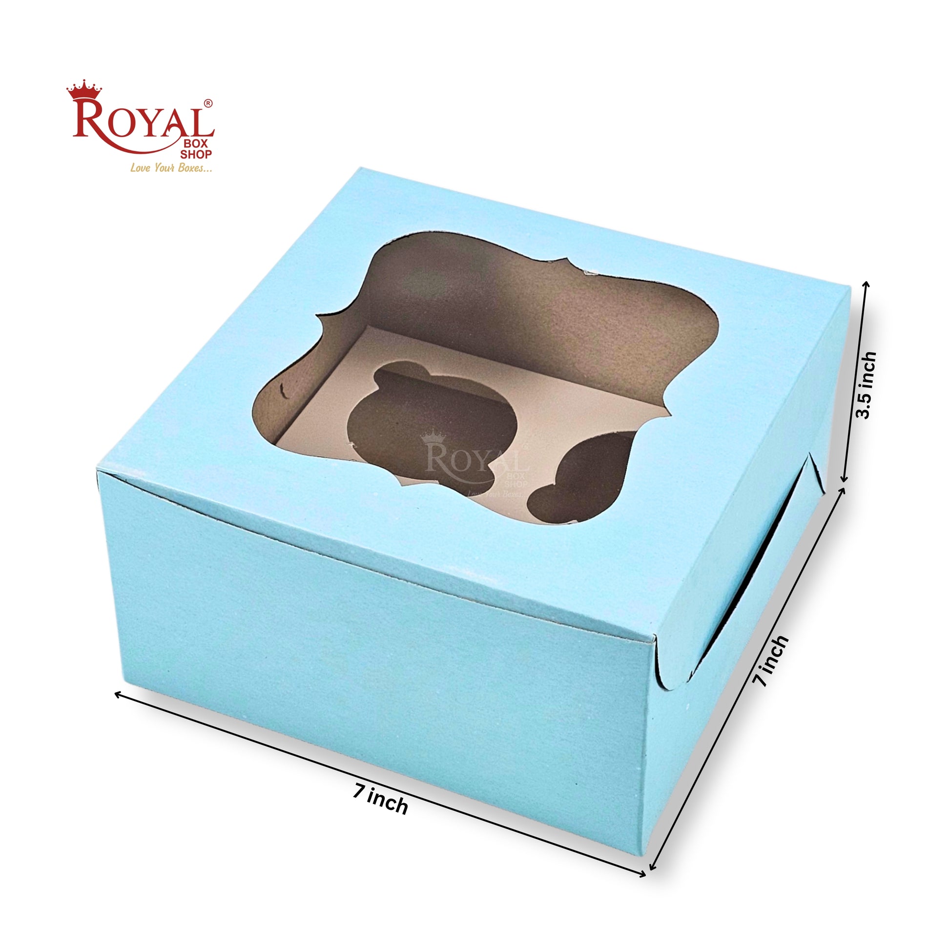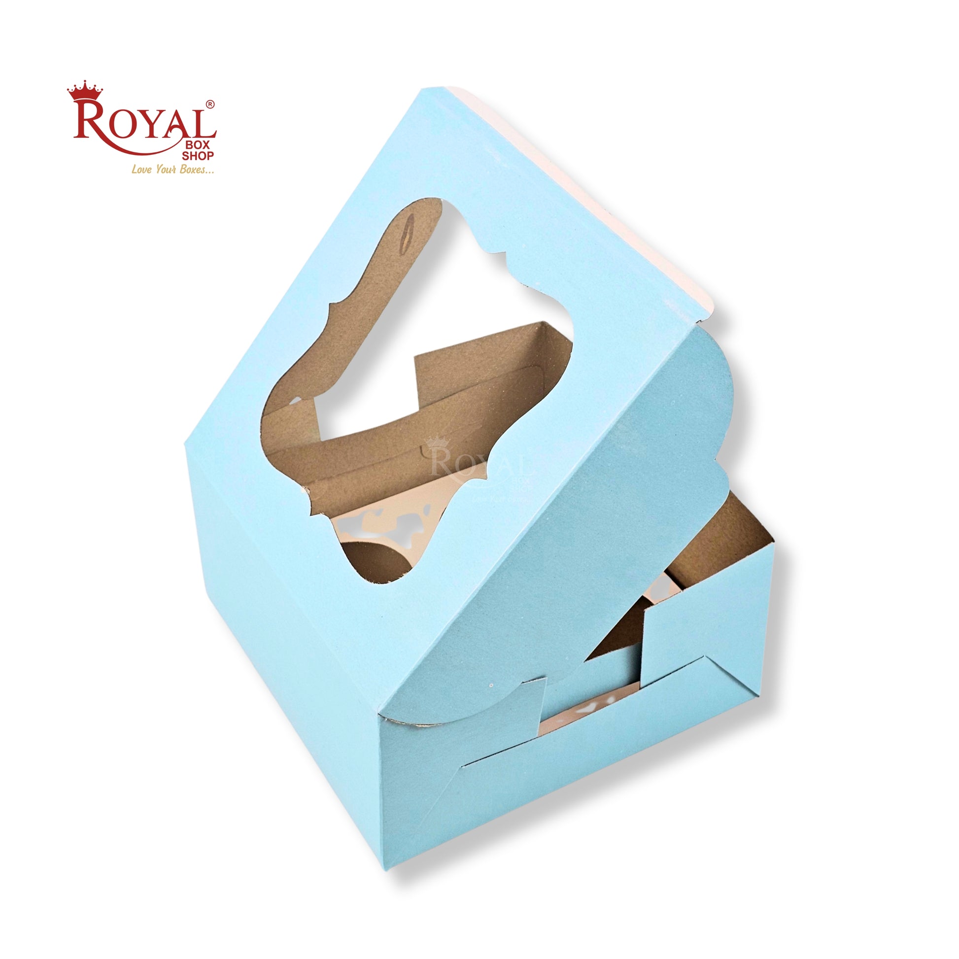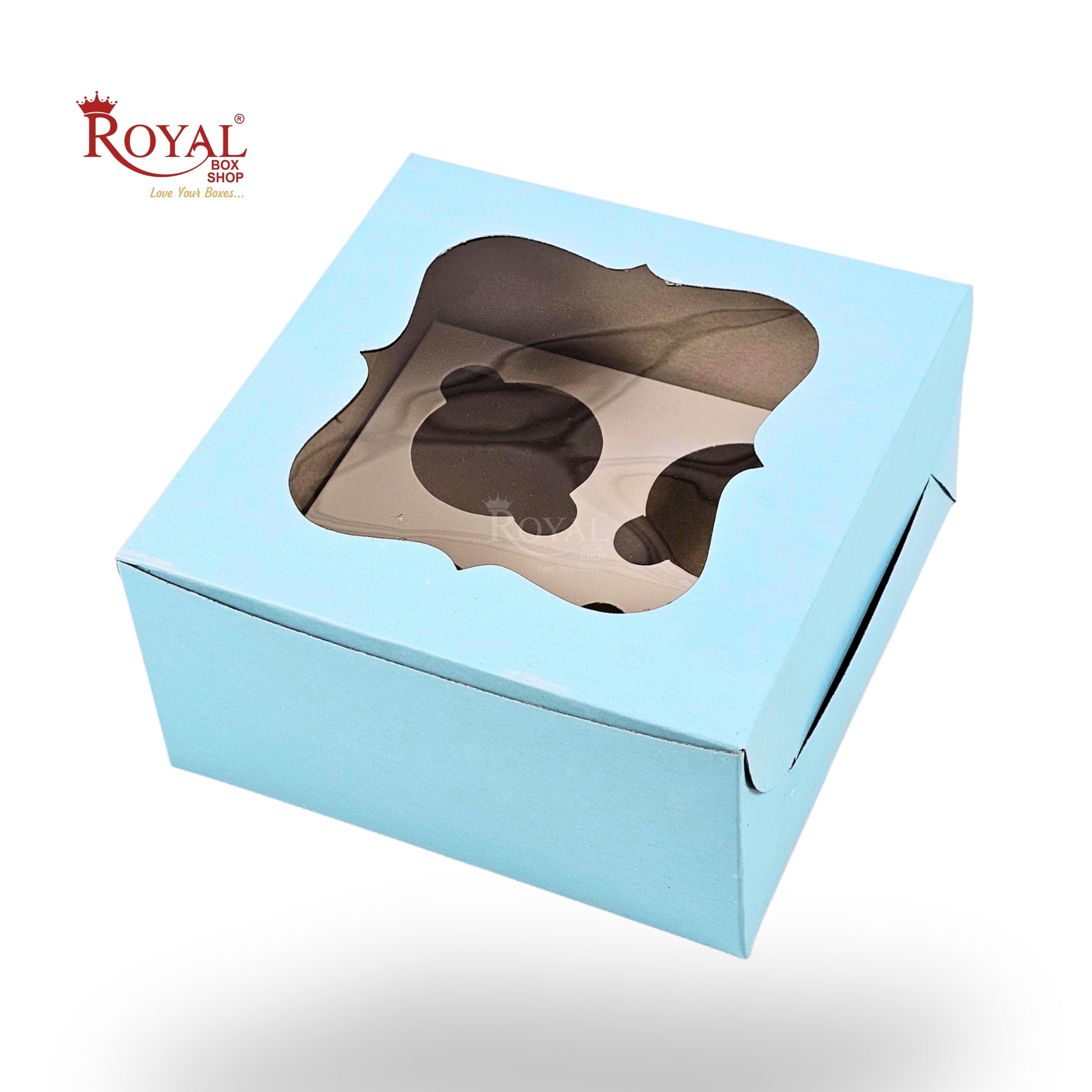 4 Cupcake Box With Window | 7x7x3.5 Inches | Blue | WB