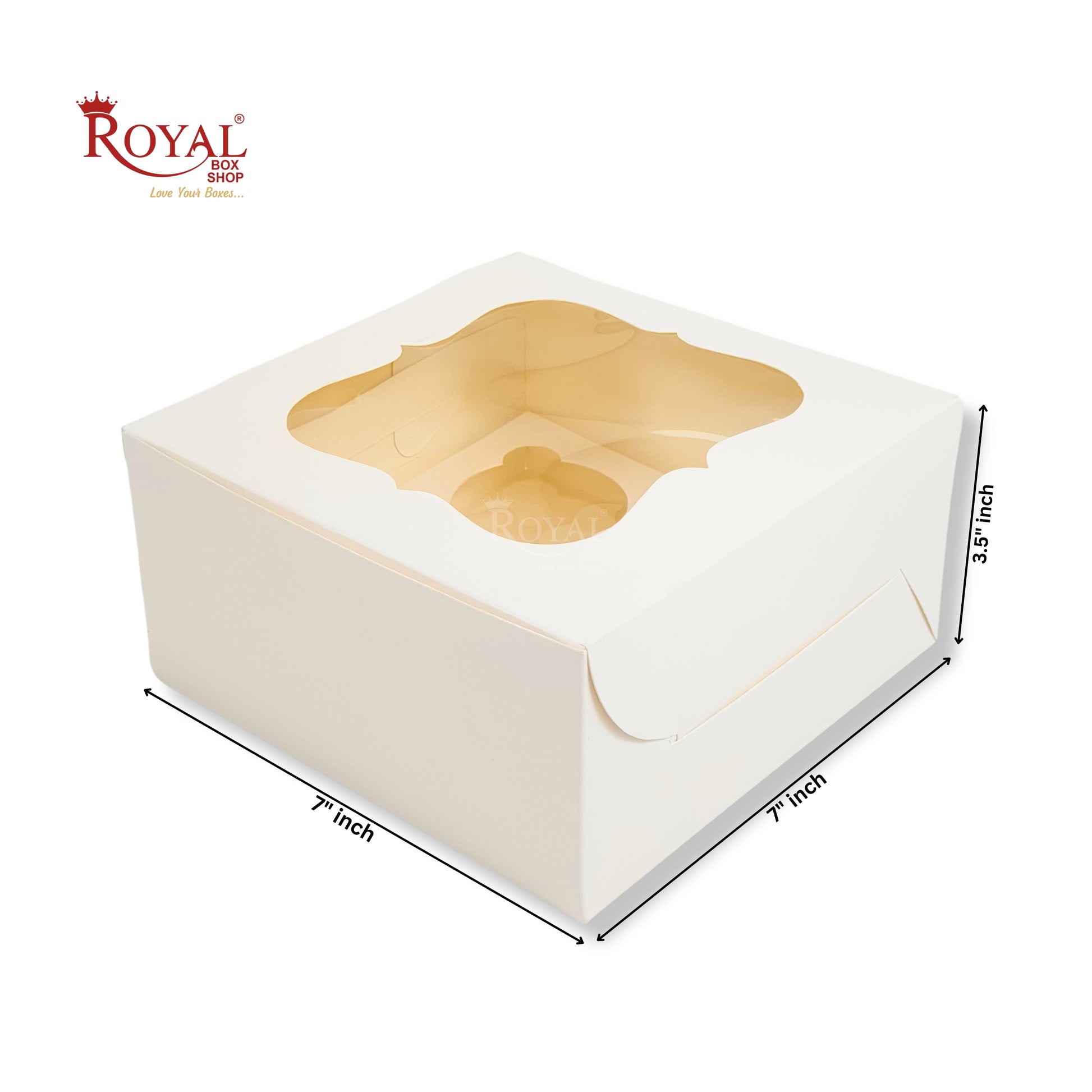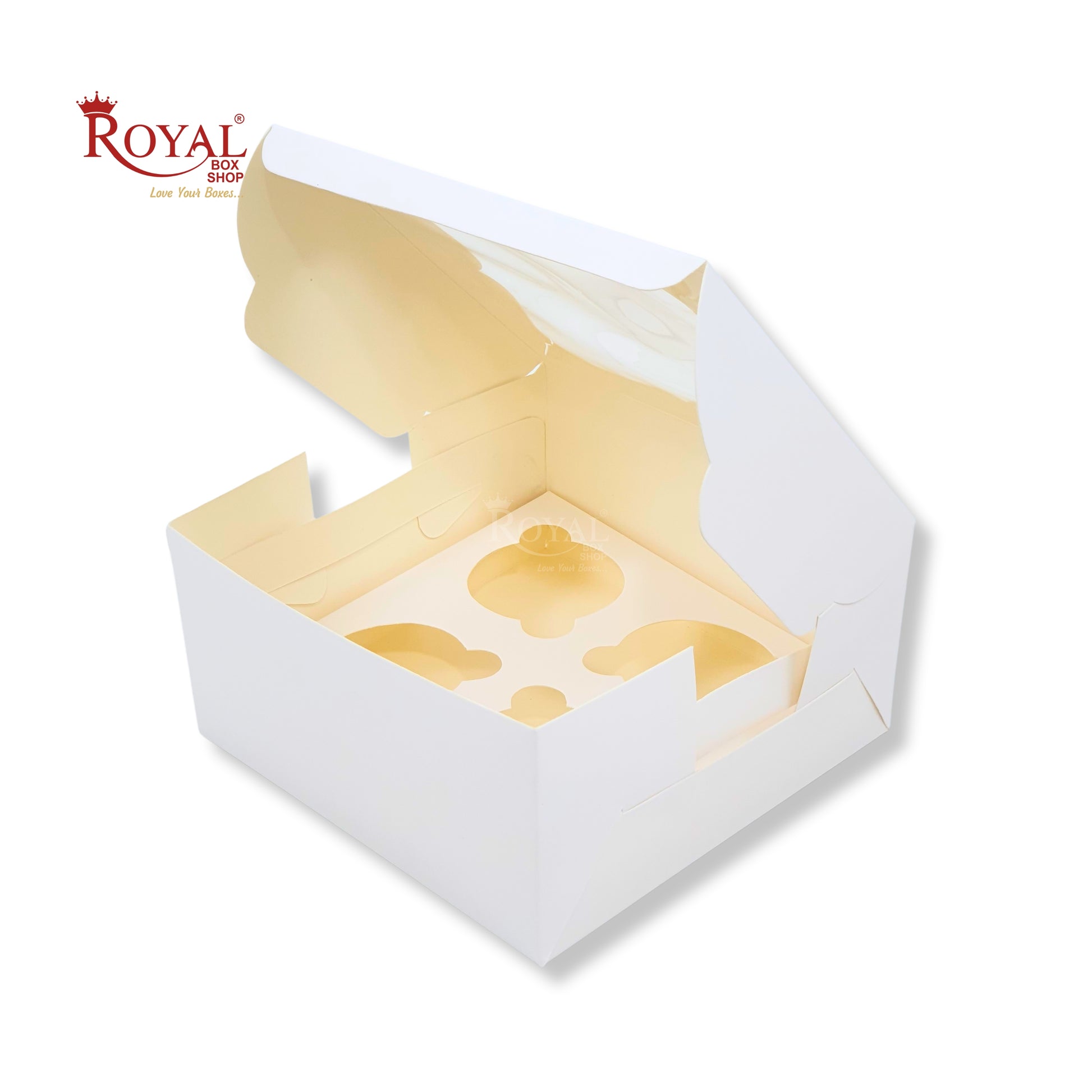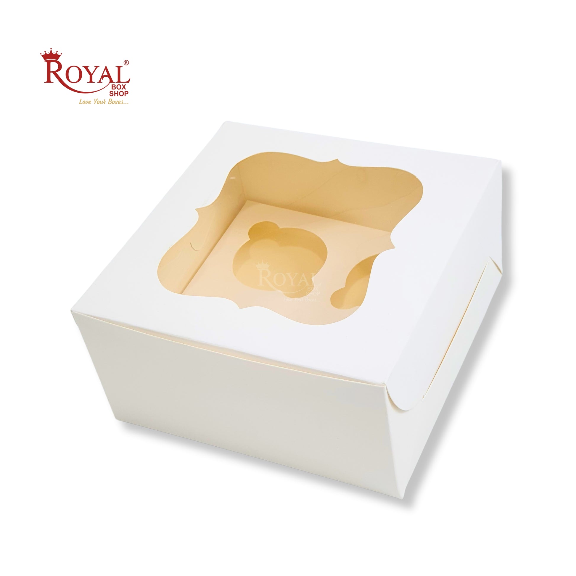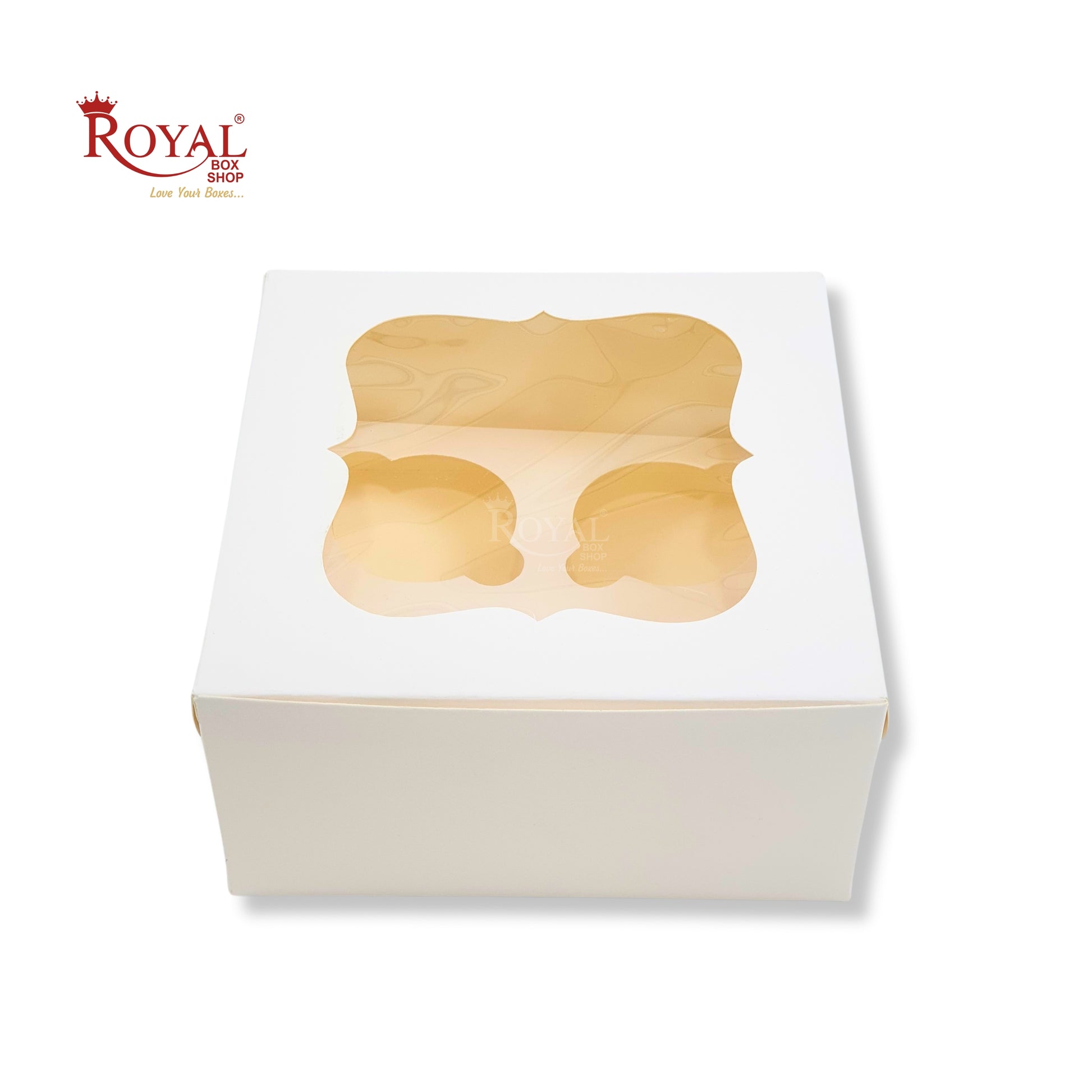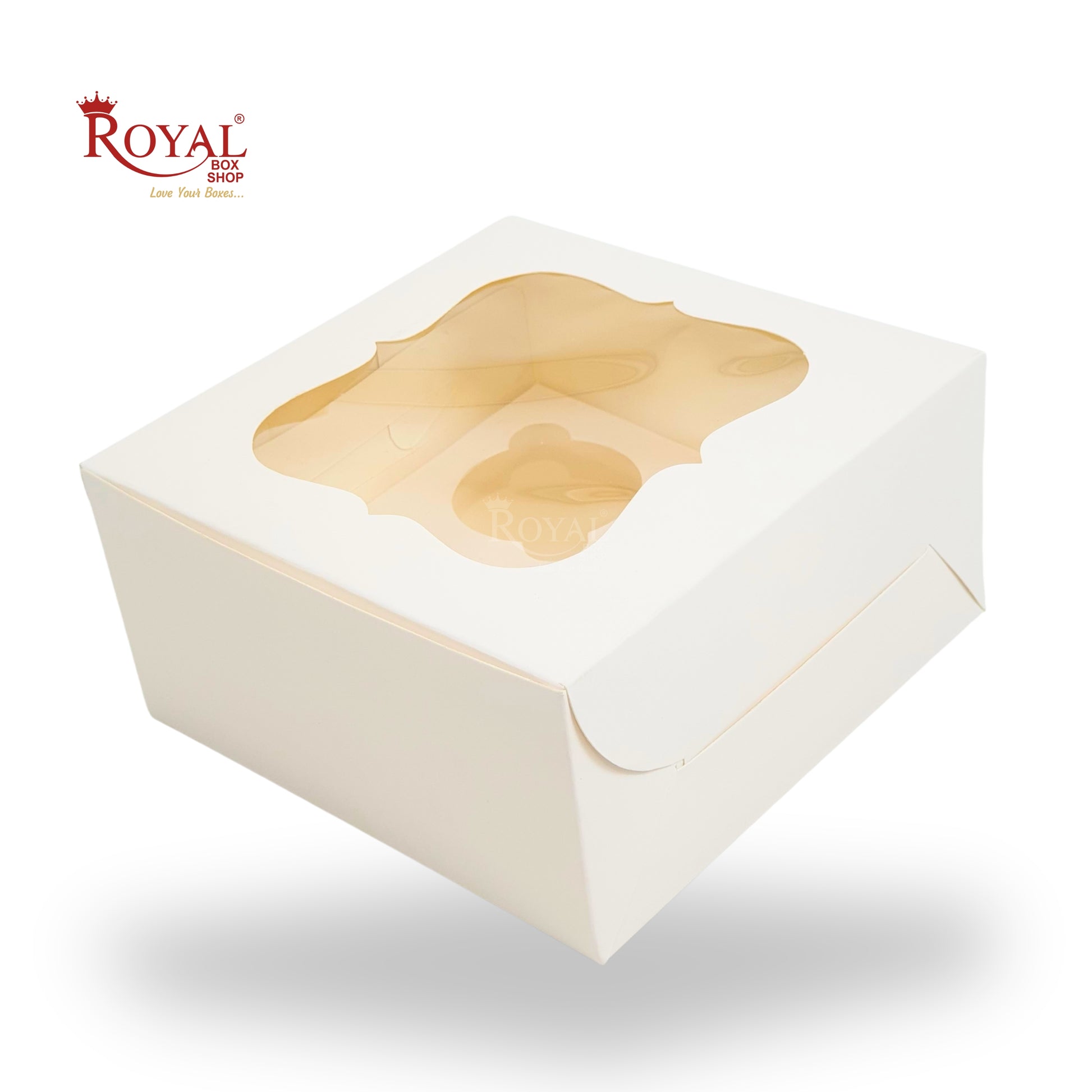 - 4 pc cupcake box with window made of premium White food grade paper.