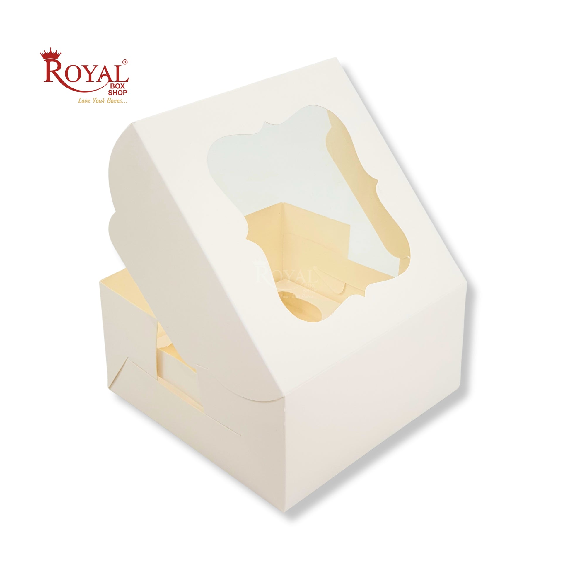 4 Cupcake Box With Window | 7x7x3.5 Inches | White