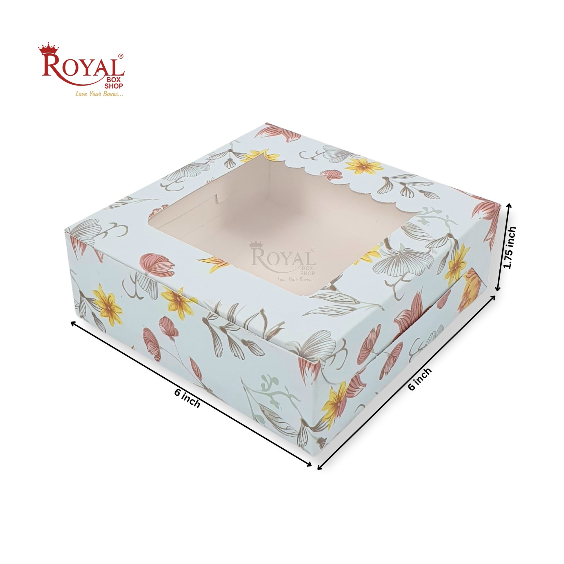4pc Brownie Window Box I Blue Floral I 6x6x1.75 Inches