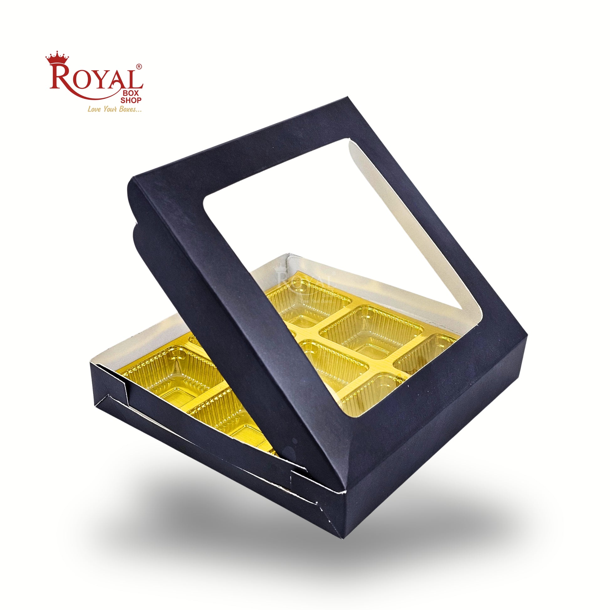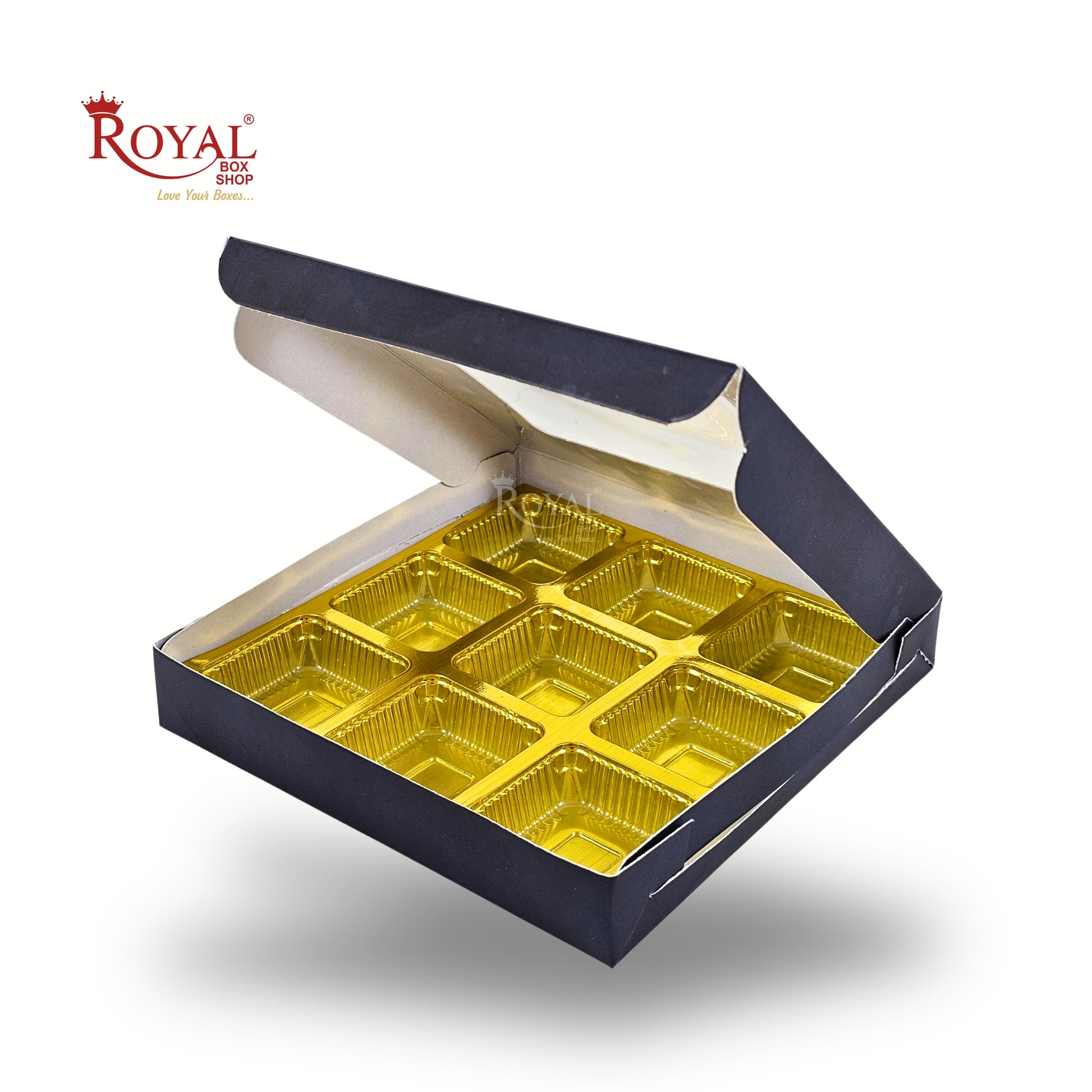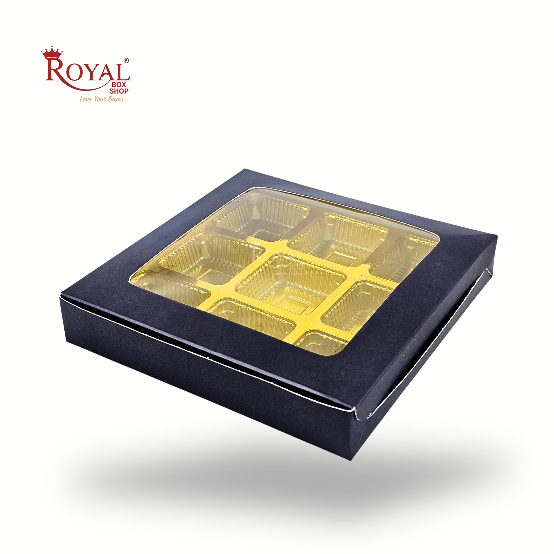 - 9 Cavity - Cardboard Chocolate boxes with dimensions 5.75 x 5.75 x 1 inches,