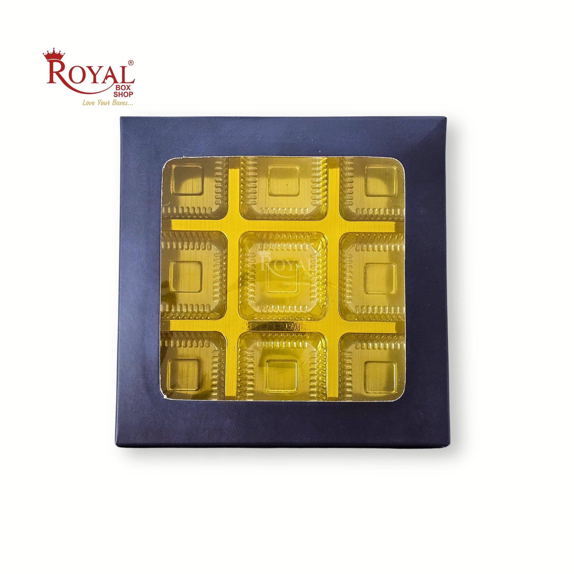 9 Cavity Chocolate Boxes | 5.75x5.75x 1 inches | Navy Blue