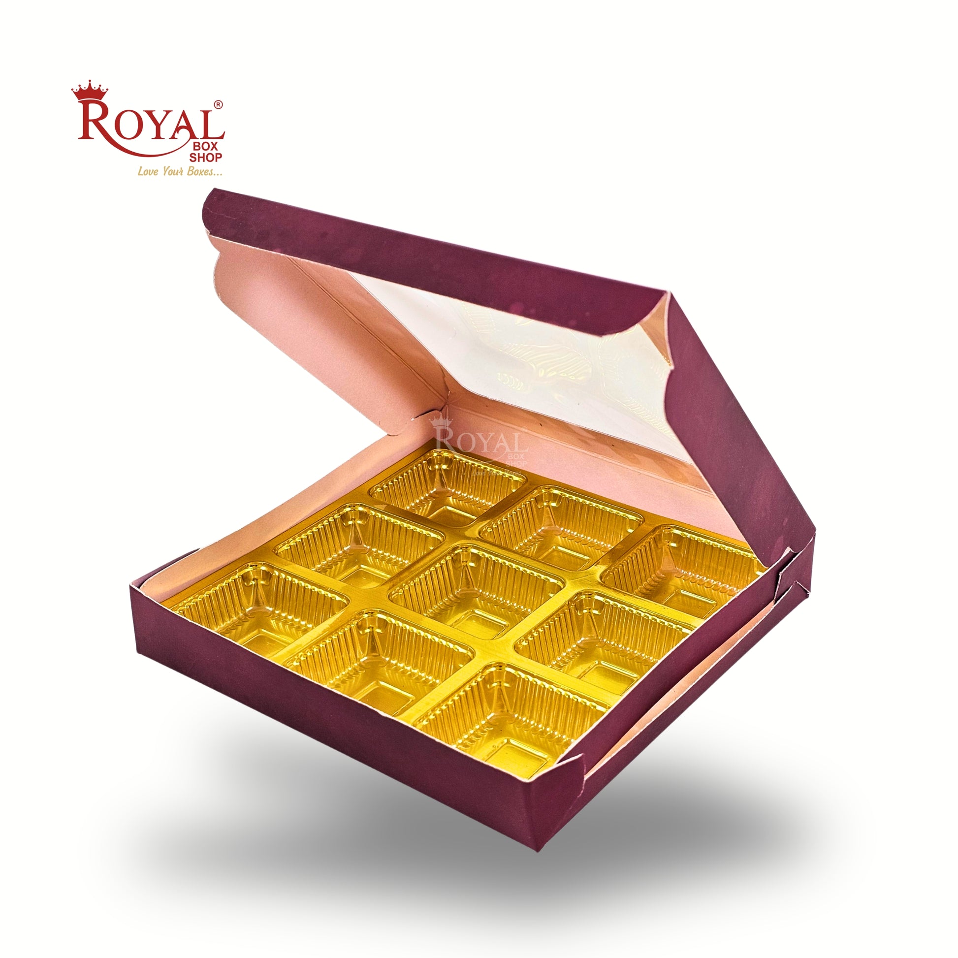 9 Cavity Chocolate Boxes | 5.75x5.75x 1 inches | Maroon