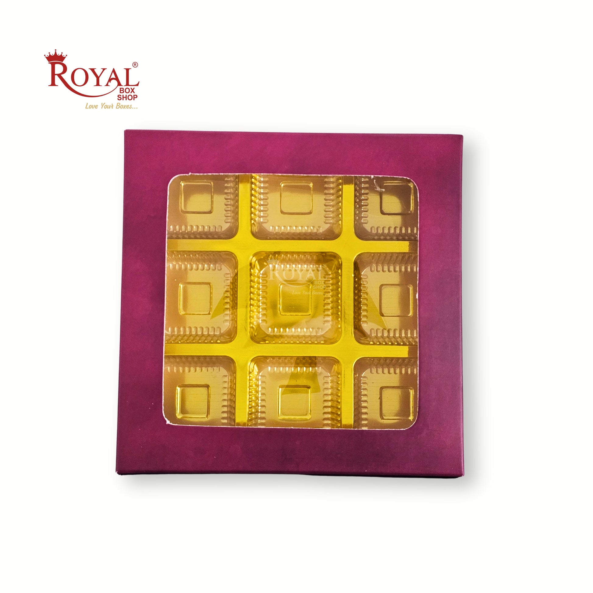 - 9 Cavity - Cardboard Chocolate boxes with dimensions 5.75 x 5.75 x 1 inches,