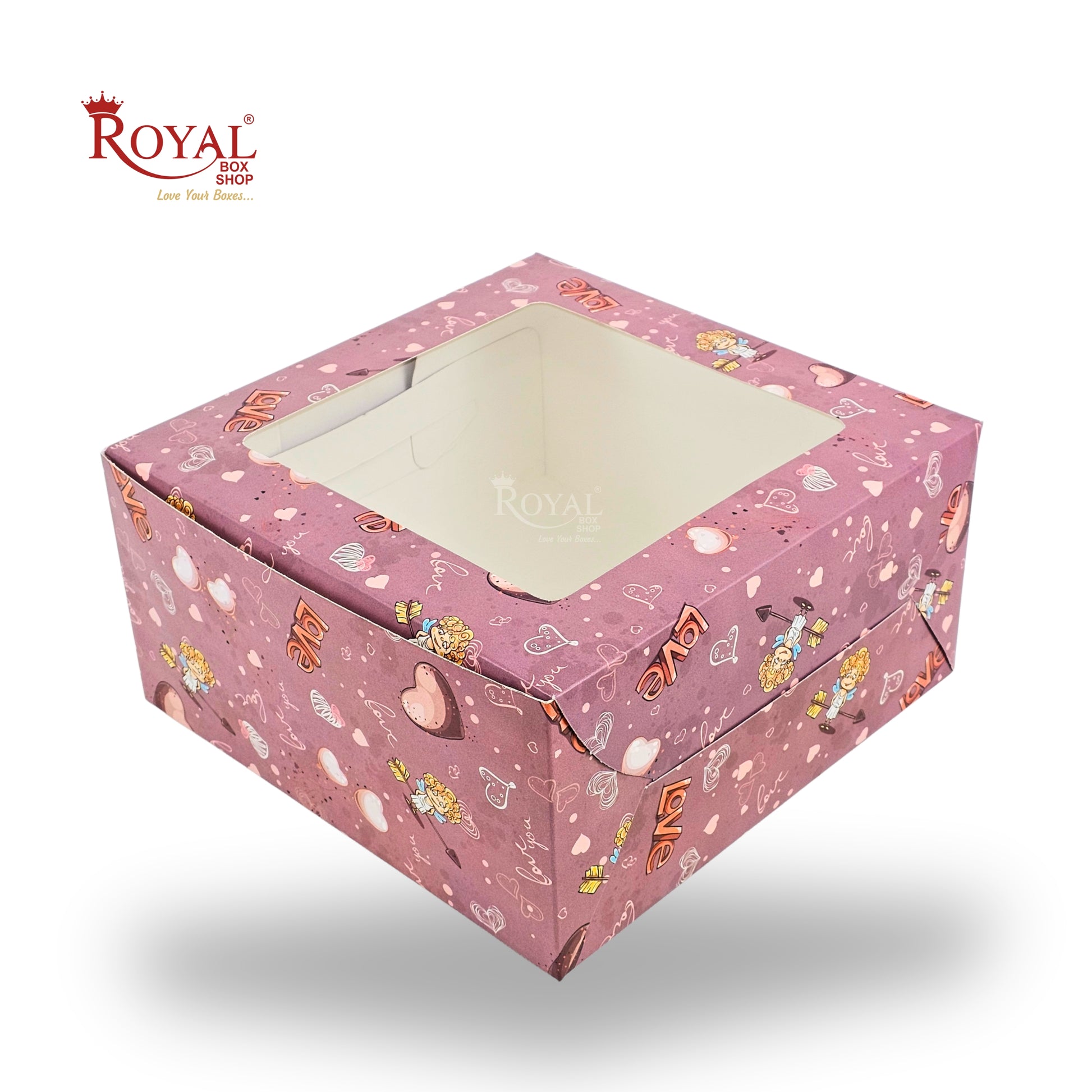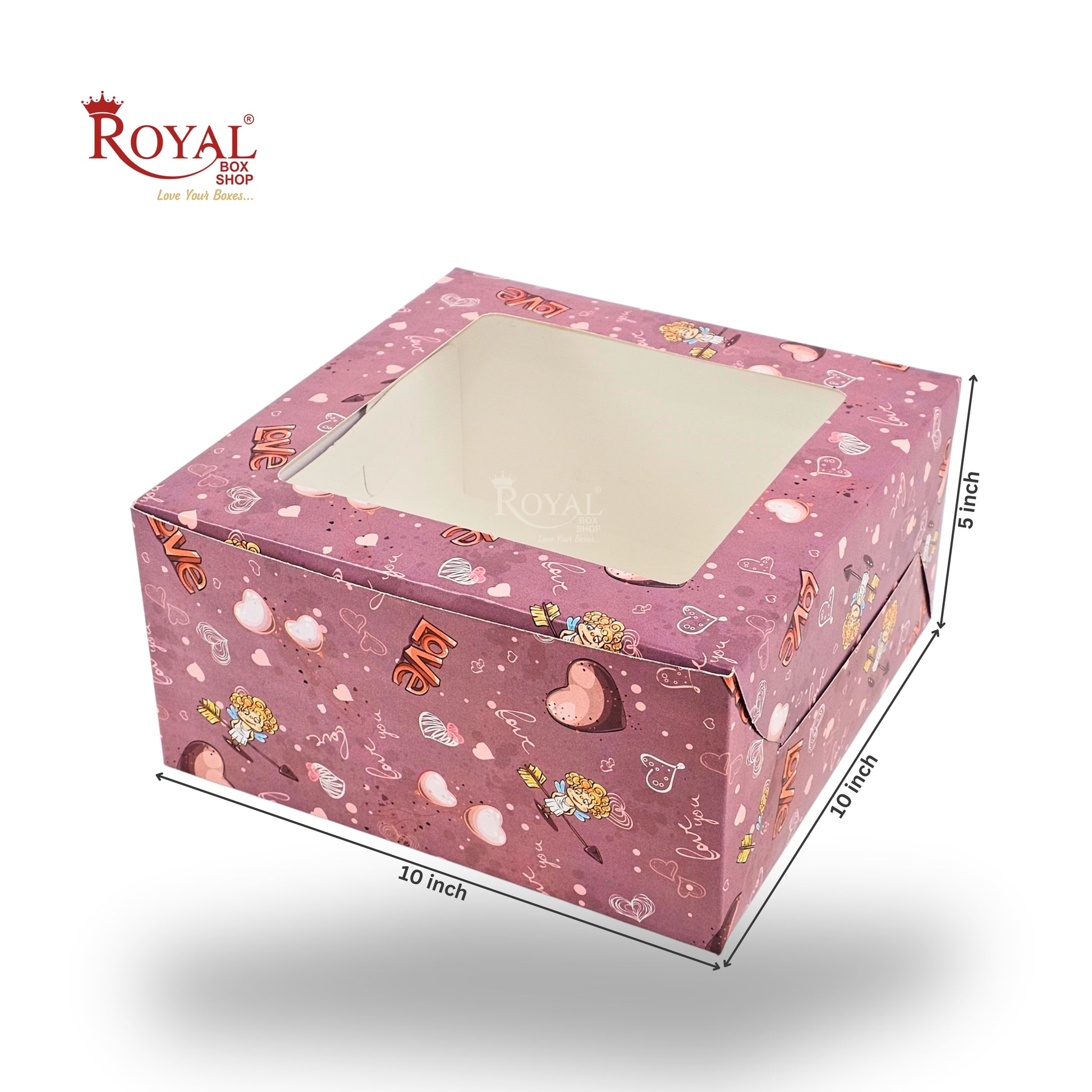 Cake Box with Window | 10x10x5 Inches | Pink Love Theme | FBB Paper | B2B