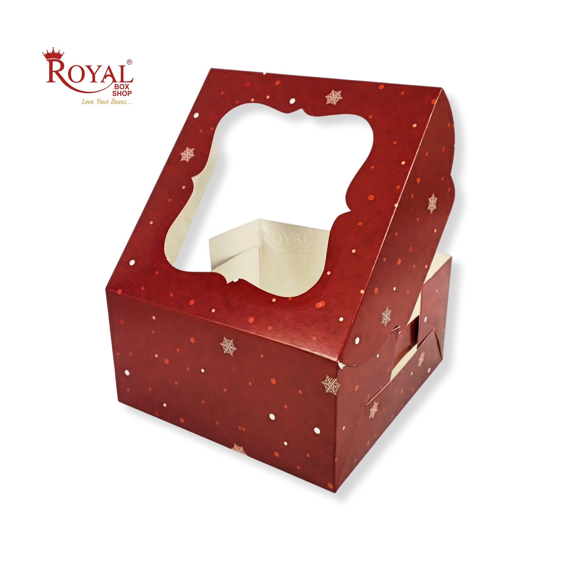Christmas Theme 4 Cupcake Box I Size 7x7x3.5 Inch I Red