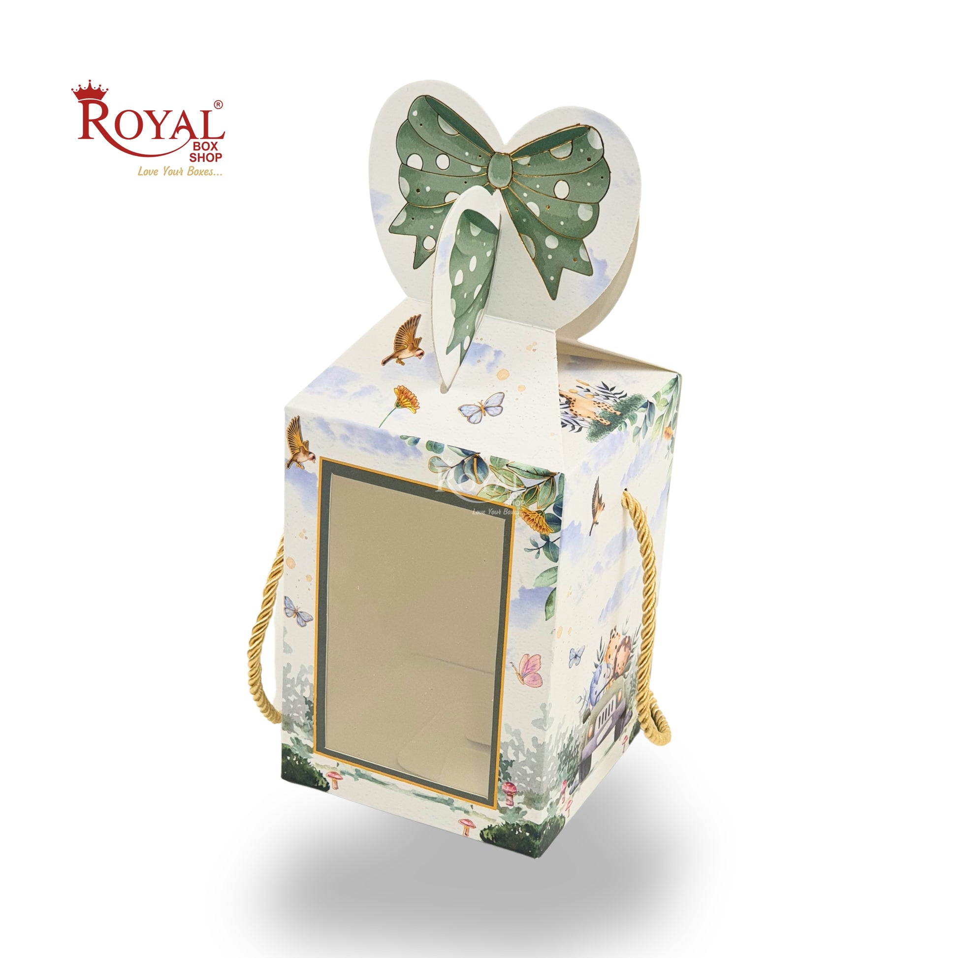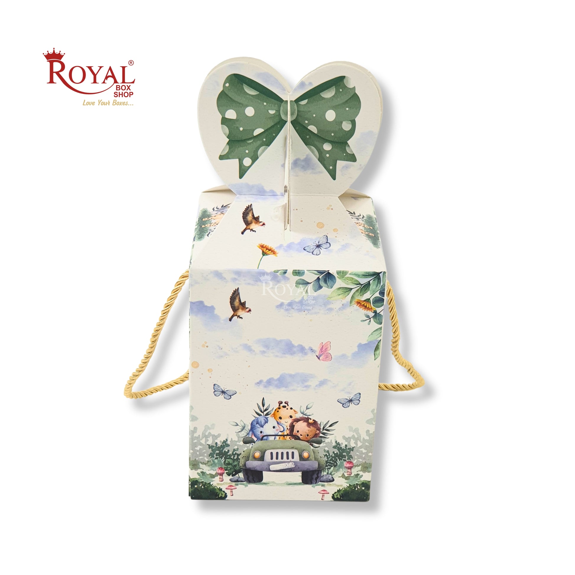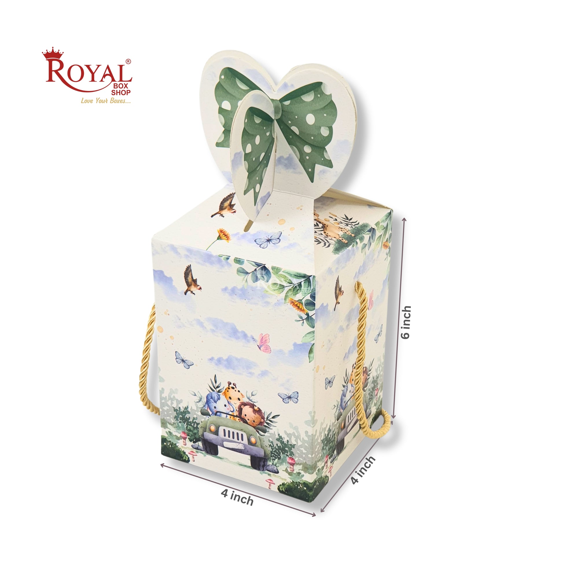 Gift Box Bow Shape | 4x4x6 Inch | RCF-02 D6 | Baby Green Jungle Theme