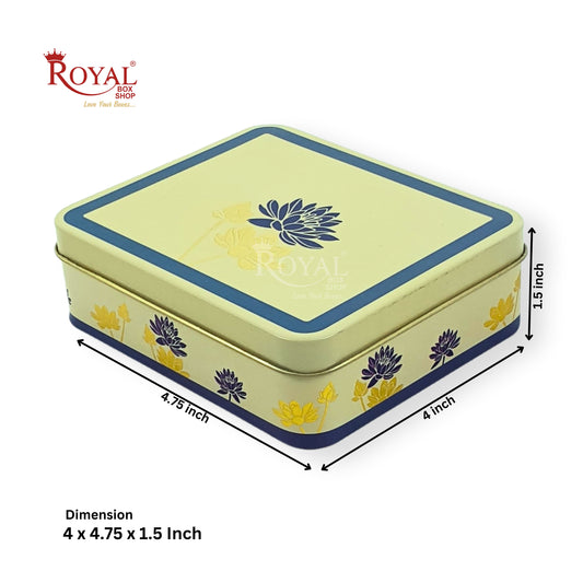 Premium Tin Box I 4"x4.75"x1.5" Inches I Cream with Leafing
