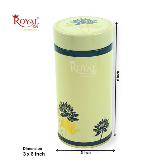 Premium Tin Jars I 6"x3" Inches I Cream With Leafing