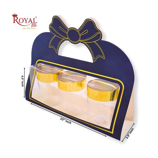 4" Inch Tube 3 Jar I Navy Blue Bow Hamper I 10x4.5x3.5 Inch