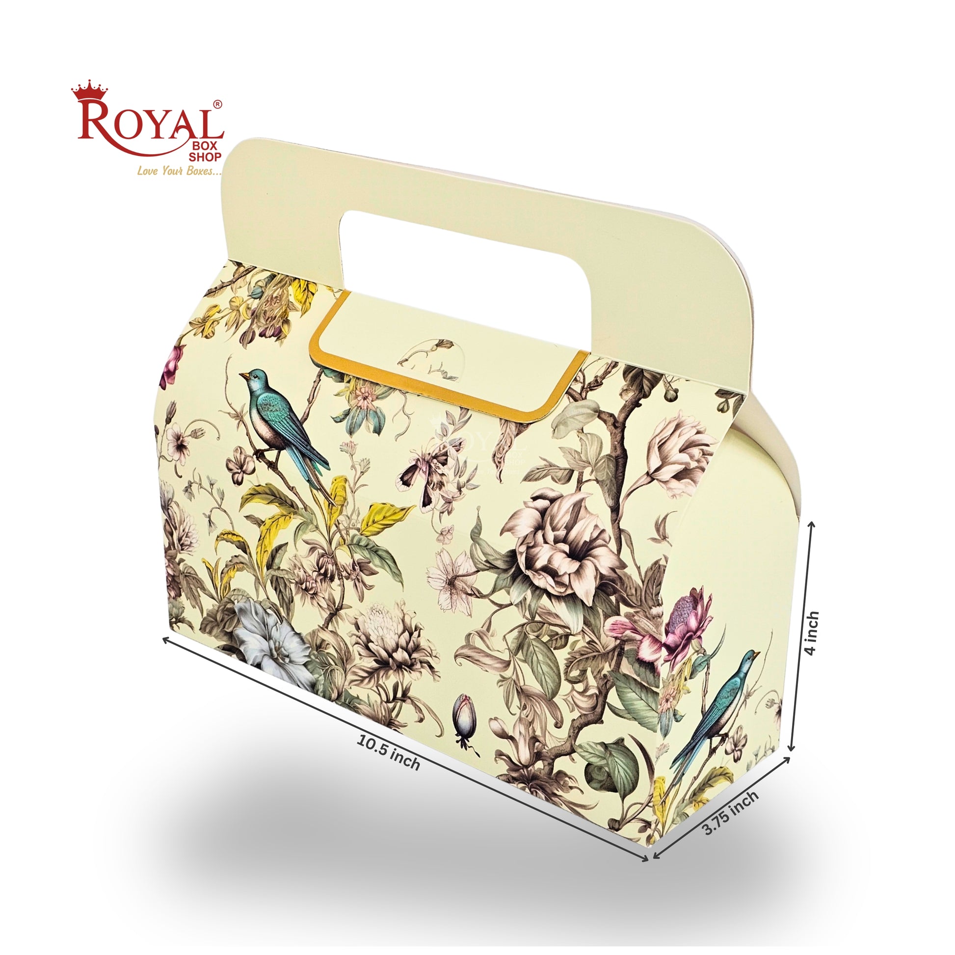 Royal Box Shop® Festive Gift Hamper Box With Handle | RBF-49 D2 | 10.5x4x3.75 Inch | Cream With Bird Print